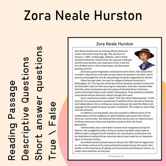 Zora Neale Hurston | Reading Comprehension Passage Printable Activity