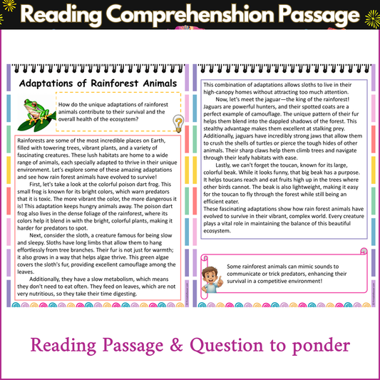 Adaptations of Rainforest Animals | Reading Comprehension Passage and Questions