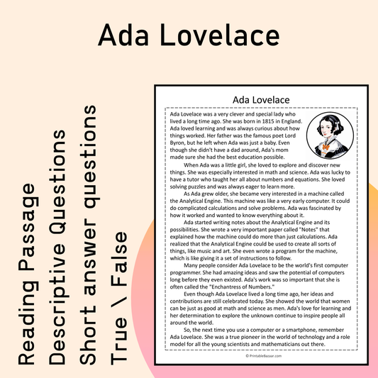 Ada Lovelace | Reading Comprehension Passage Printable Activity