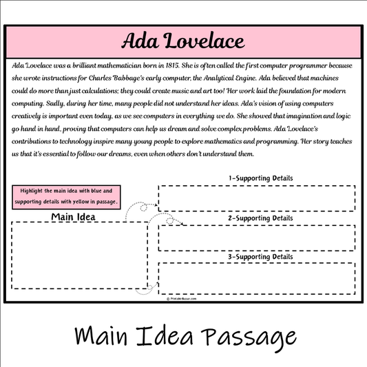 Ada Lovelace | Main Idea and Supporting Details Reading Passage and Questions