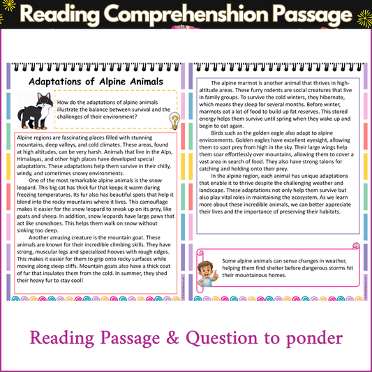 Adaptations of Alpine Animals | Reading Comprehension Passage and Questions