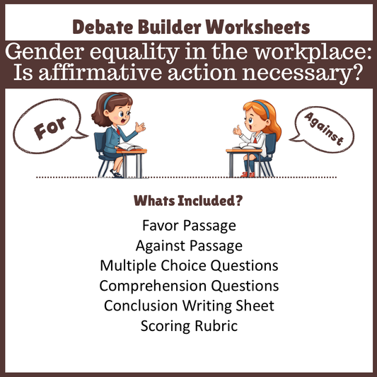 Gender equality in the workplace: Is affirmative action necessary? | Favour and Against Worksheet Printable Activity