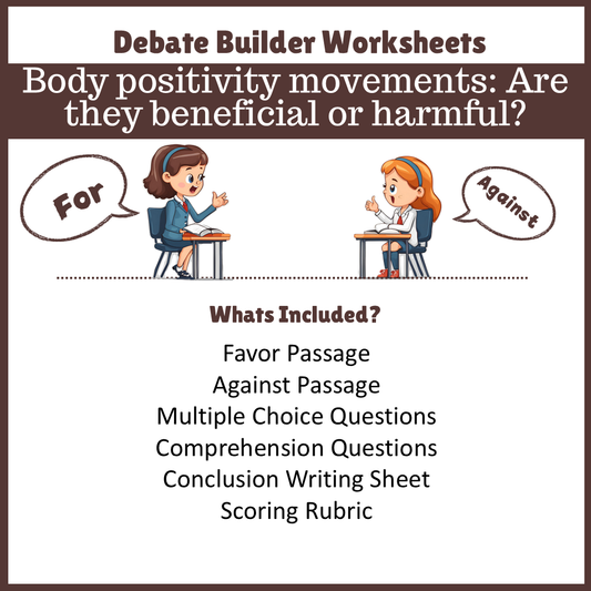 Body positivity movements: Are they beneficial or harmful? | Favour and Against Worksheet Printable Activity