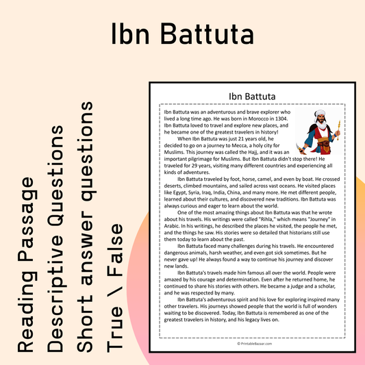 Ibn Battuta | Reading Comprehension Passage Printable Activity