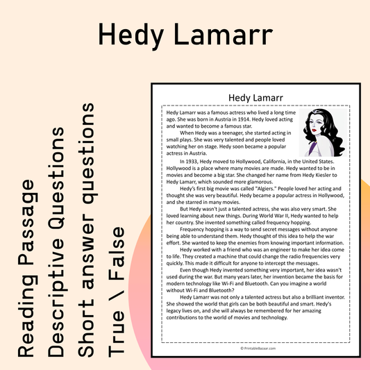Hedy Lamarr | Reading Comprehension Passage Printable Activity
