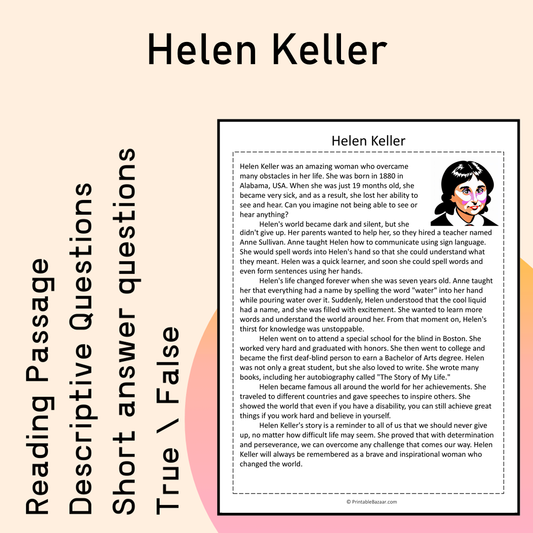 Helen Keller | Reading Comprehension Passage Printable Activity