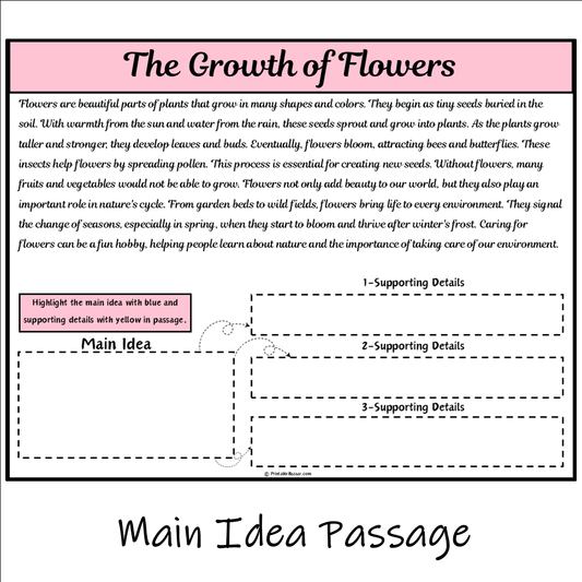 The Growth of Flowers | Main Idea and Supporting Details Reading Passage and Questions