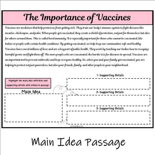 The Importance of Vaccines | Main Idea and Supporting Details Reading Passage and Questions