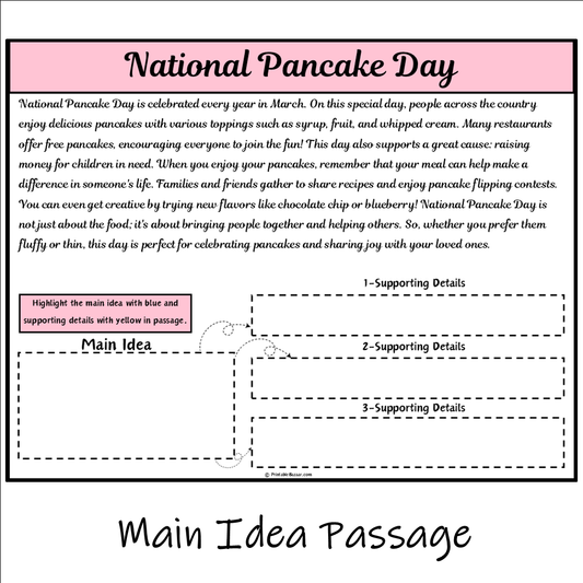 National Pancake Day | Main Idea and Supporting Details Reading Passage and Questions