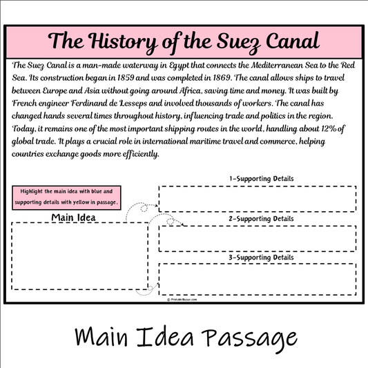 The History of the Suez Canal | Main Idea and Supporting Details Reading Passage and Questions