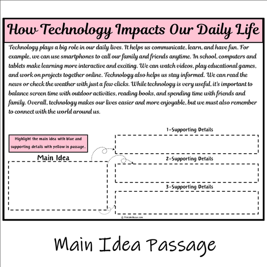 How Technology Impacts Our Daily Life | Main Idea and Supporting Details Reading Passage and Questions