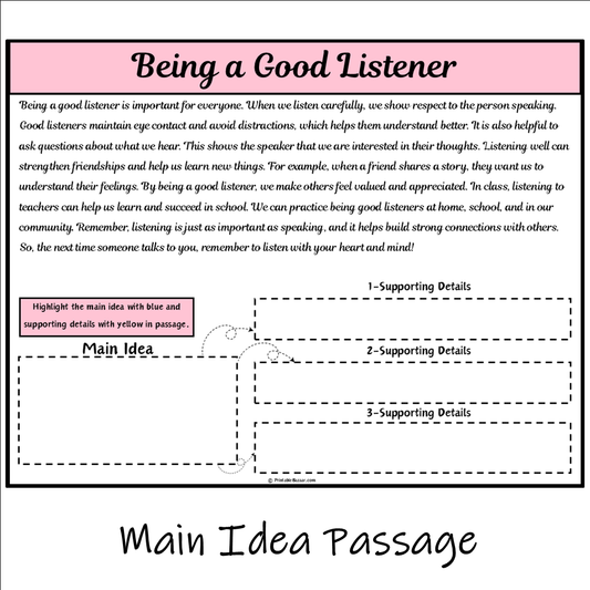 Being a Good Listener | Main Idea and Supporting Details Reading Passage and Questions