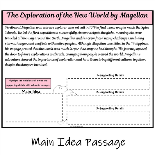 The Exploration of the New World by Magellan | Main Idea and Supporting Details Reading Passage and Questions
