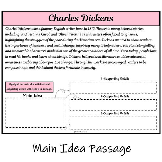 Charles Dickens | Main Idea and Supporting Details Reading Passage and Questions