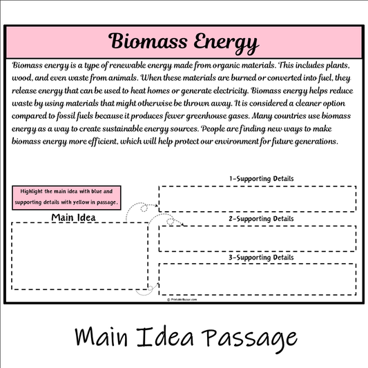Biomass Energy | Main Idea and Supporting Details Reading Passage and Questions