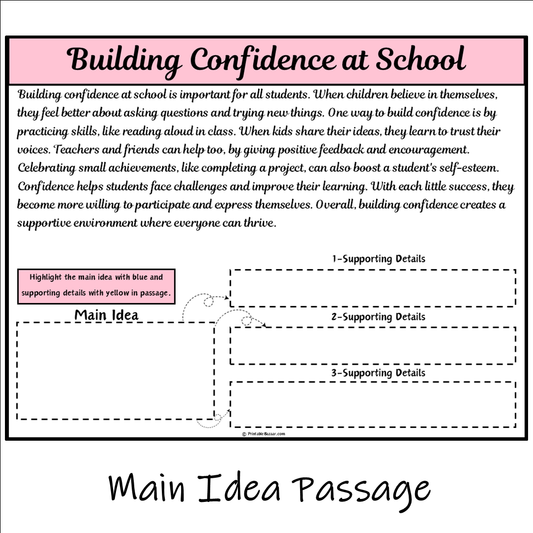 Building Confidence at School | Main Idea and Supporting Details Reading Passage and Questions