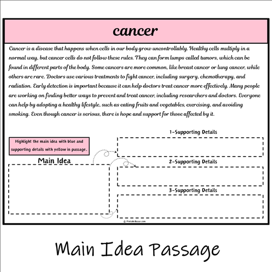 cancer | Main Idea and Supporting Details Reading Passage and Questions