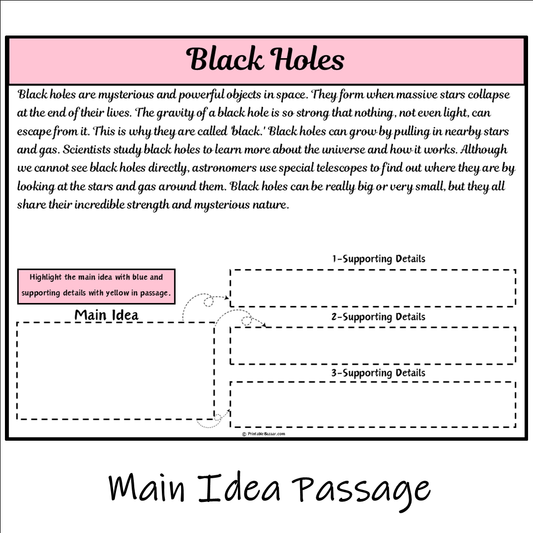 Black Holes | Main Idea and Supporting Details Reading Passage and Questions