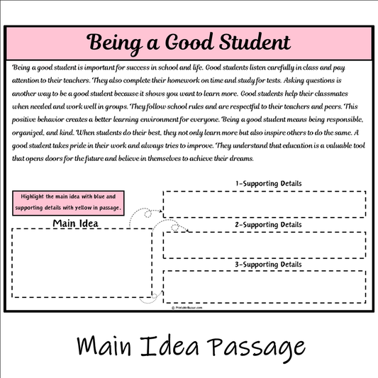 Being a Good Student | Main Idea and Supporting Details Reading Passage and Questions