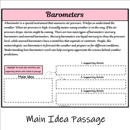 Barometers | Main Idea and Supporting Details Reading Passage and Questions
