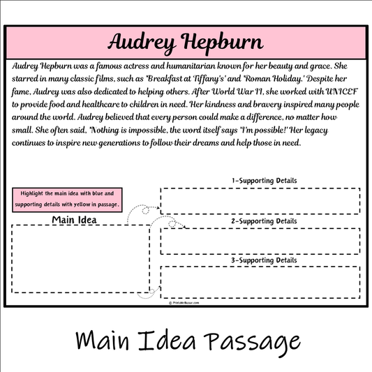 Audrey Hepburn | Main Idea and Supporting Details Reading Passage and Questions