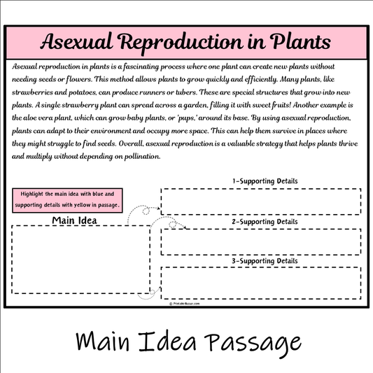 Asexual Reproduction in Plants | Main Idea and Supporting Details Reading Passage and Questions