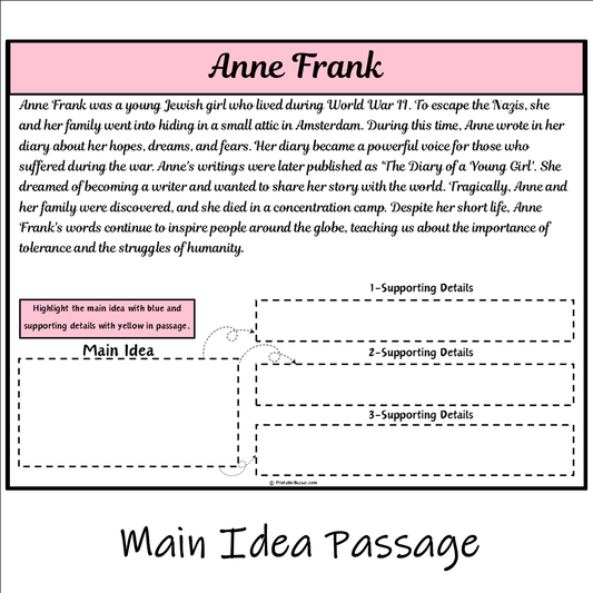 Anne Frank | Main Idea and Supporting Details Reading Passage and Questions