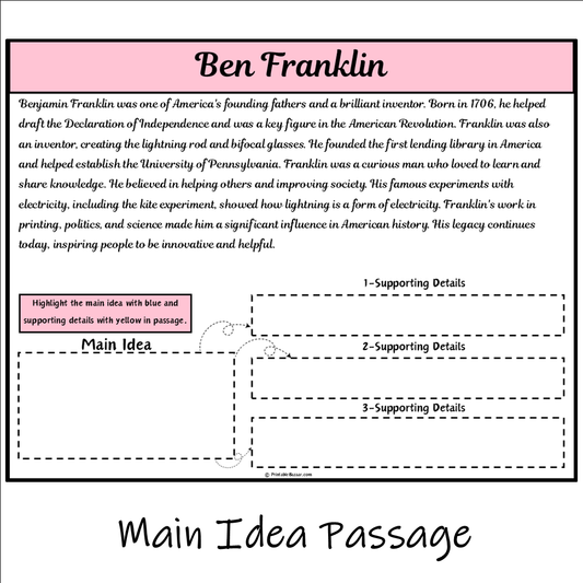 Benjamin Franklin | Main Idea and Supporting Details Reading Passage and Questions