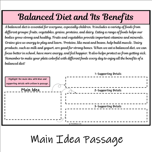 Balanced Diet and Its Benefits | Main Idea and Supporting Details Reading Passage and Questions
