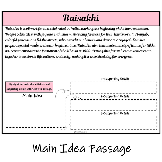 Baisakhi | Main Idea and Supporting Details Reading Passage and Questions