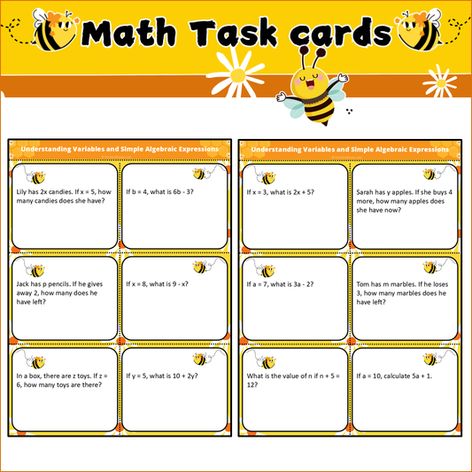 Understanding Variables and Simple Algebraic Expressions | Math Task Cards