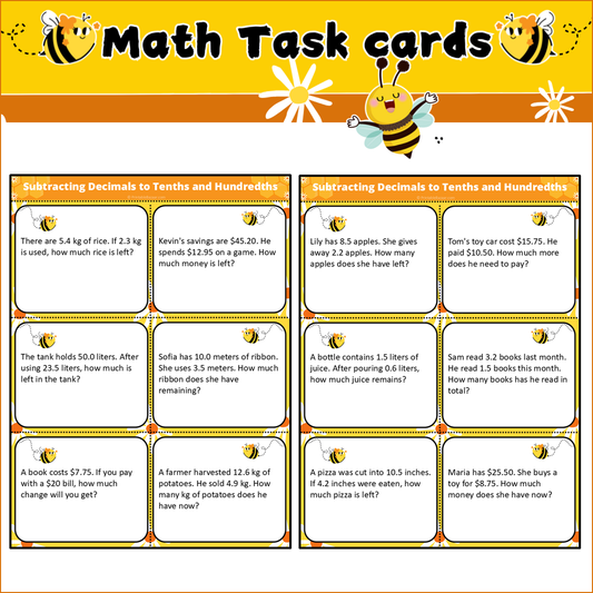 Subtracting Decimals to Tenths and Hundredths | Math Task Cards
