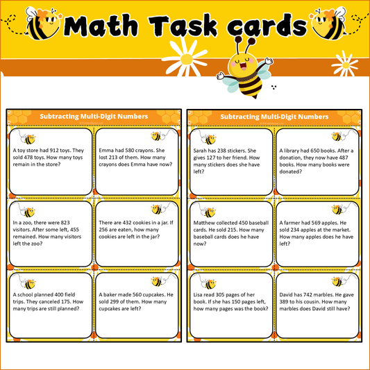 Subtracting Multi-Digit Numbers | Math Task Cards