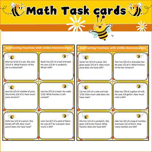 Subtracting Fractions with Unlike Denominators | Math Task Cards