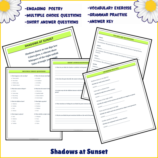 Shadows at Sunset | Poem Grammar Worksheet Printable Activity