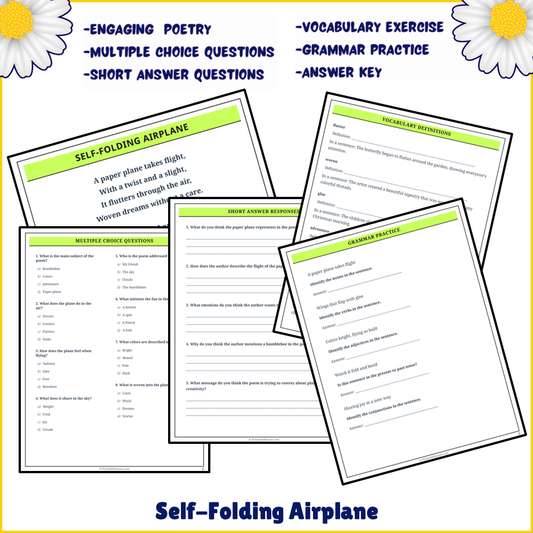 Self-Folding Airplane | Poem Grammar Worksheet Printable Activity
