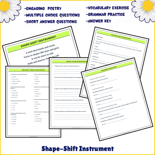 Shape-Shift Instrument | Poem Grammar Worksheet Printable Activity