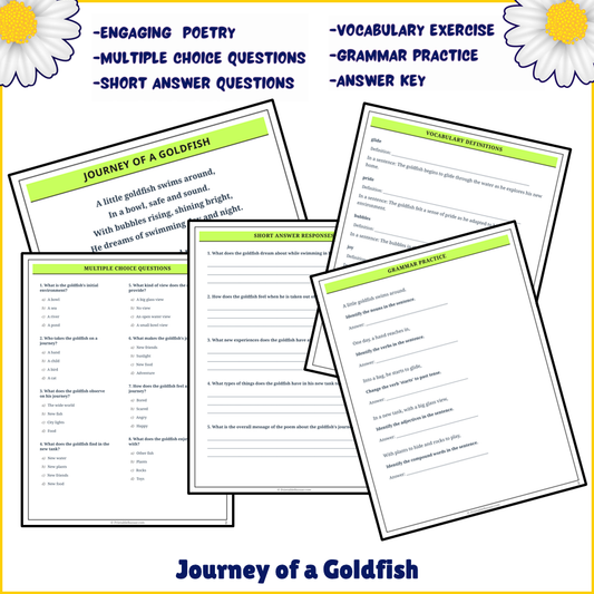 Journey of a Goldfish | Poem Grammar Worksheet Printable Activity