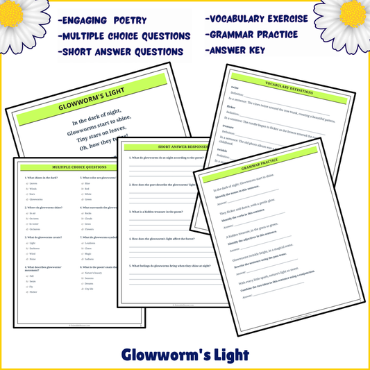 Glowworm's Light | Poem Grammar Worksheet Printable Activity