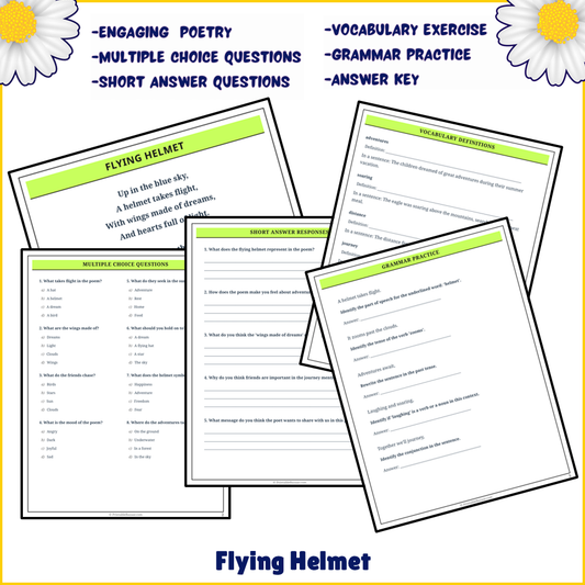 Flying Helmet | Poem Grammar Worksheet Printable Activity