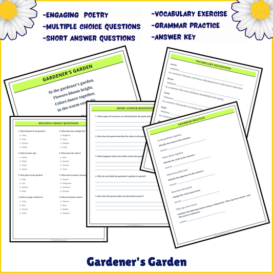 Gardener's Garden | Poem Grammar Worksheet Printable Activity