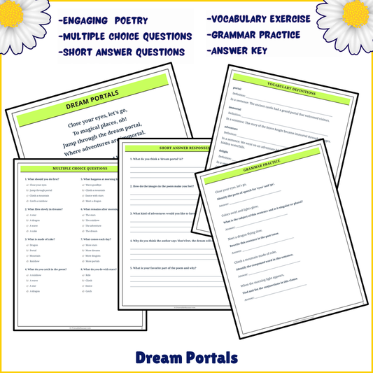 Dream Portals | Poem Grammar Worksheet Printable Activity