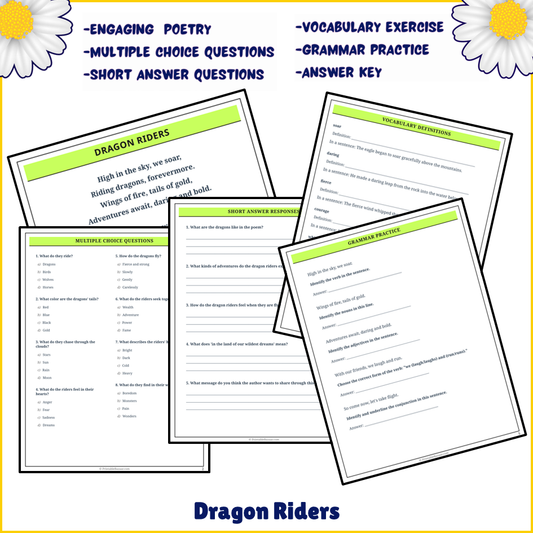 Dragon Riders | Poem Grammar Worksheet Printable Activity