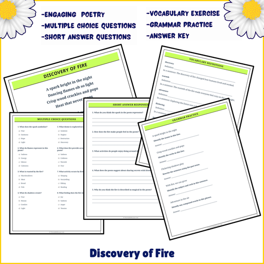 Discovery of Fire | Poem Grammar Worksheet Printable Activity