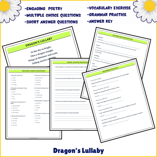 Dragon's Lullaby | Poem Grammar Worksheet Printable Activity