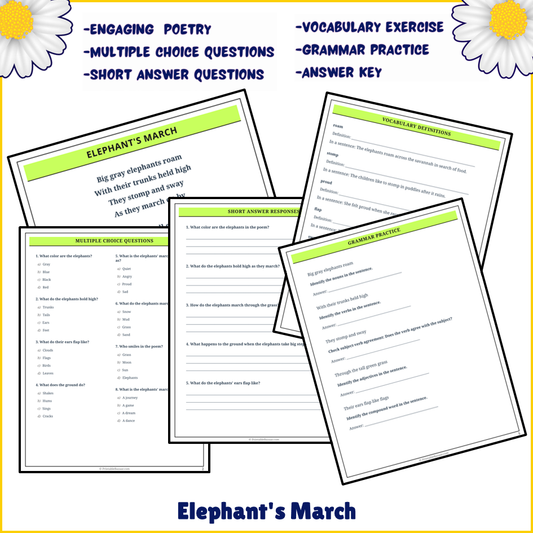 Elephant's March | Poem Grammar Worksheet Printable Activity