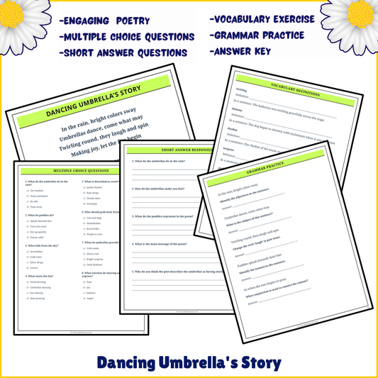 Dancing Umbrella's Story | Poem Grammar Worksheet Printable Activity