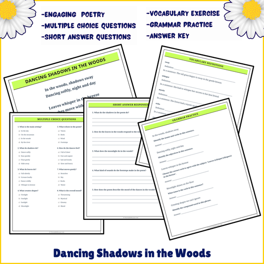 Dancing Shadows in the Woods | Poem Grammar Worksheet Printable Activity
