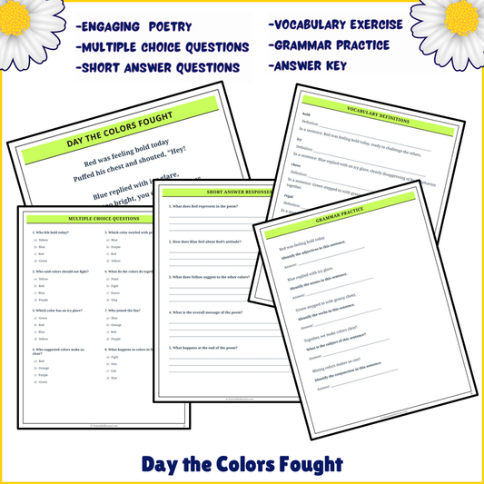 Day the Colors Fought | Poem Grammar Worksheet Printable Activity