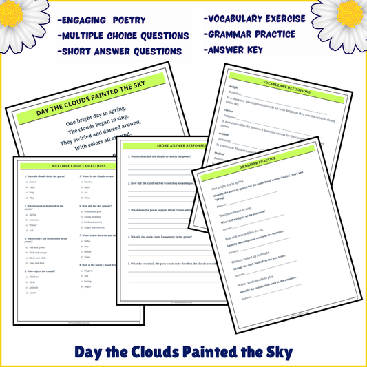 Day the Clouds Painted the Sky | Poem Grammar Worksheet Printable Activity